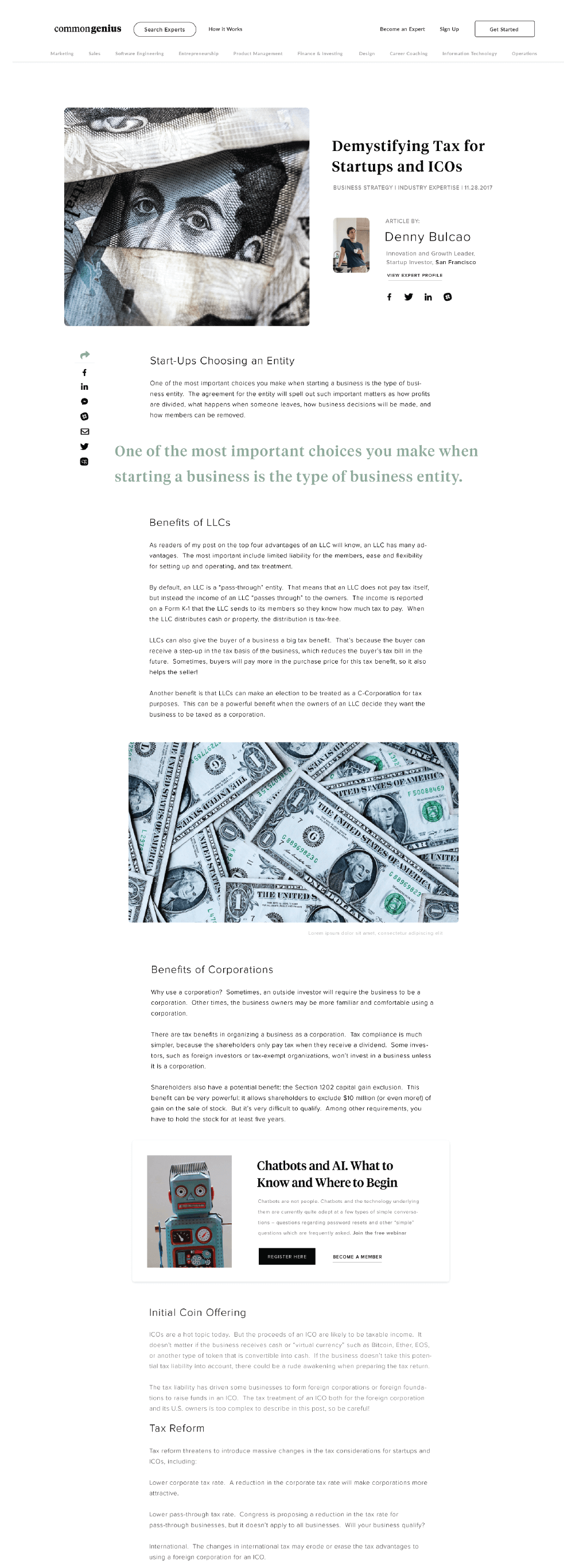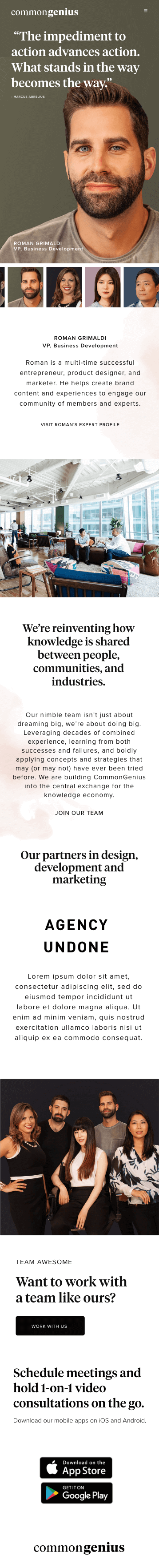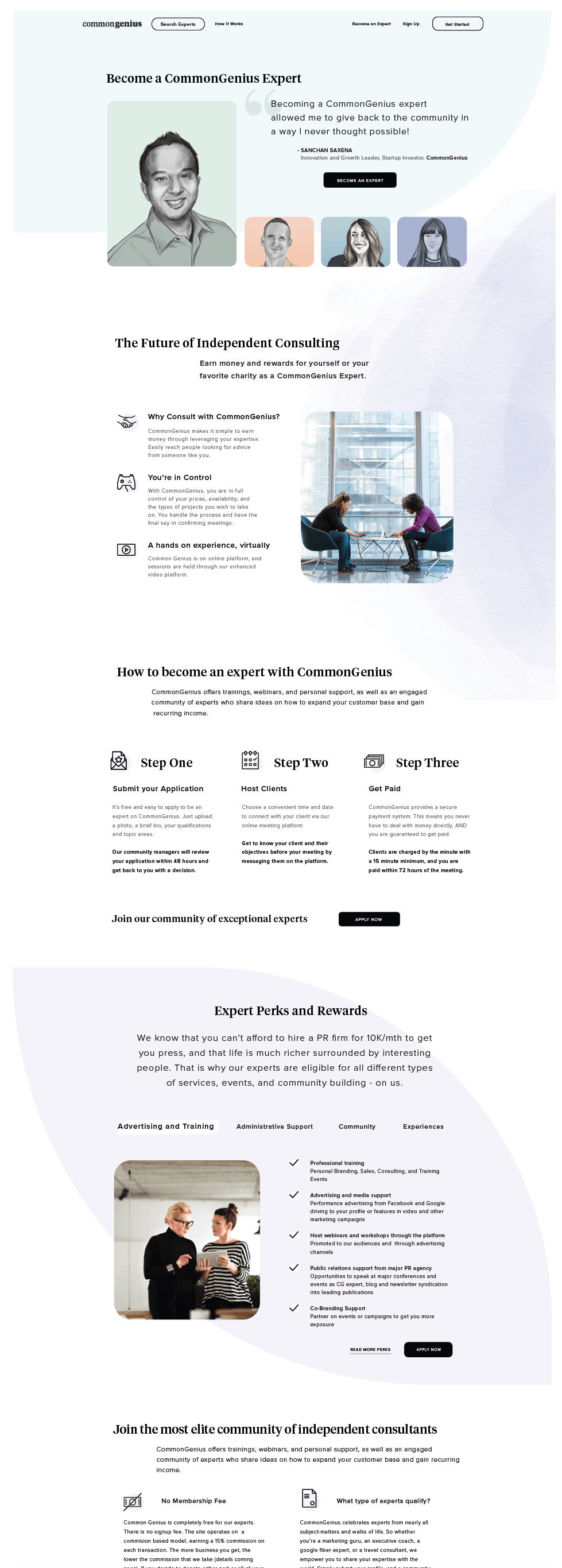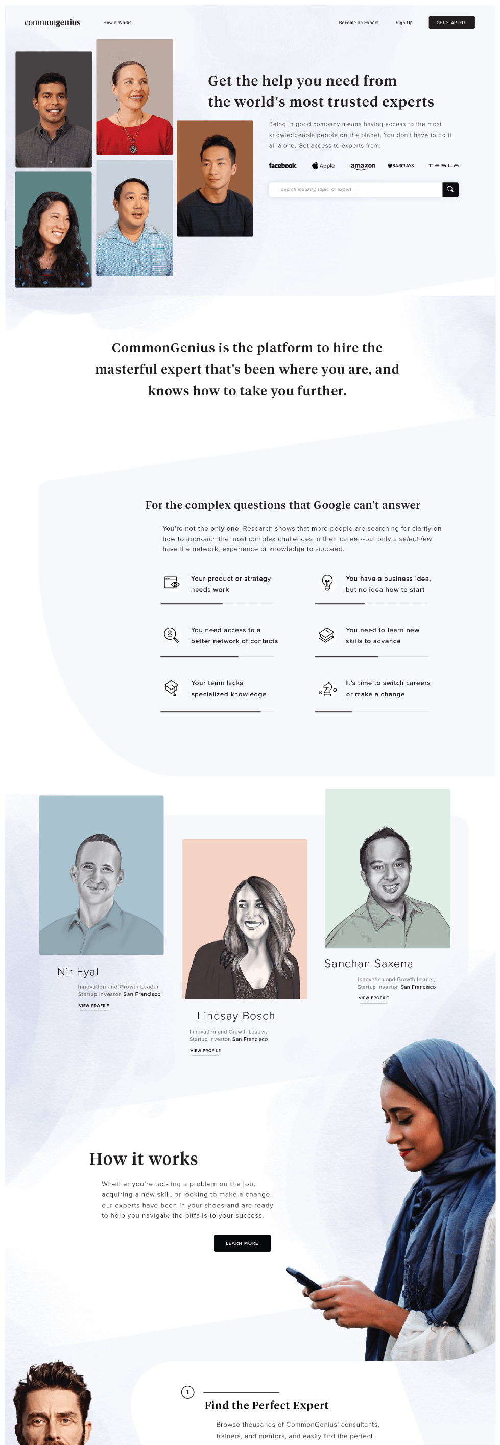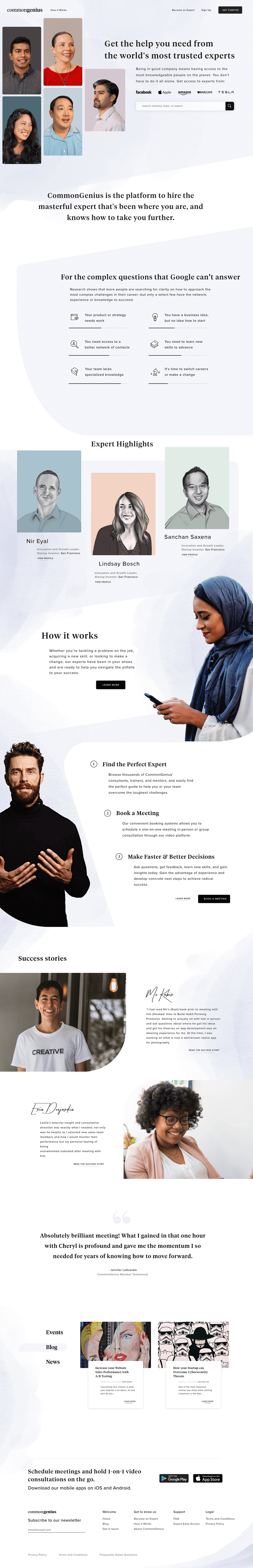 The came to us as Promeets, a silicon valley start-up that enabled local meetings & mentorship opportunities. They became CommonGenius, a feature-rich subscription platform allowing members to schedule a one-to-one meeting with the world’s most trusted experts.