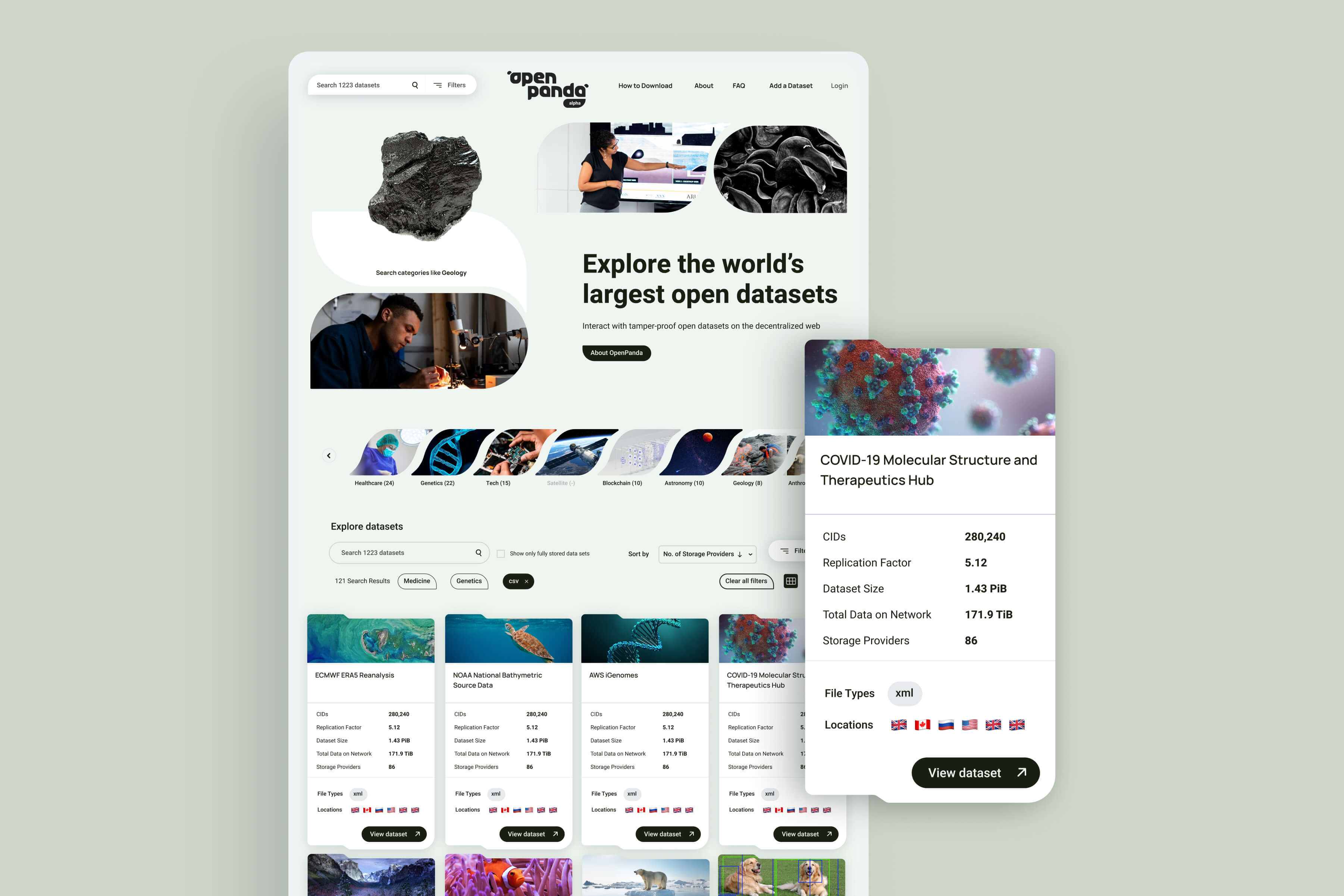 Open Panda is a platform for data scientists and enthusiasts that facilitates the exploration and download of large datasets, stored in a distributed and immutable format.